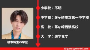 詳しくは、こちらの【橋本将生の学歴】大学はどこ?神奈川県立茅ヶ崎西浜高校を卒業?偏差値や卒業アルバム情報まとめをどうぞご覧ください。