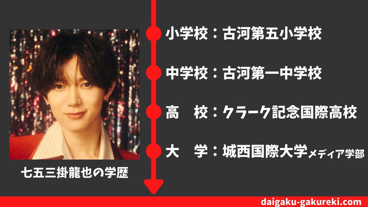 七五三掛龍也さんは、クラーク記念国際高校を卒業後、城西国際大学のメディア系学部へ進学した可能性が高いとされています。