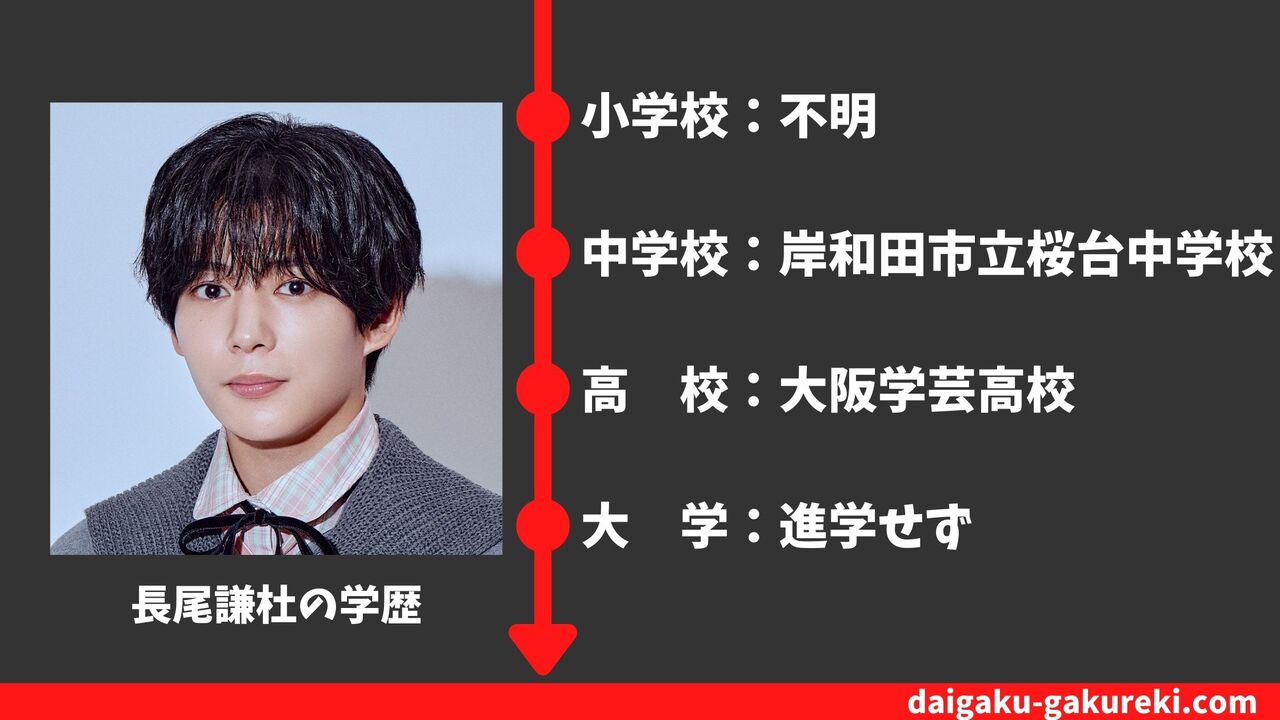 長尾謙杜さんは、大阪府岸和田市の公立校である岸和田市立桜台中学校に通っていたとされています。