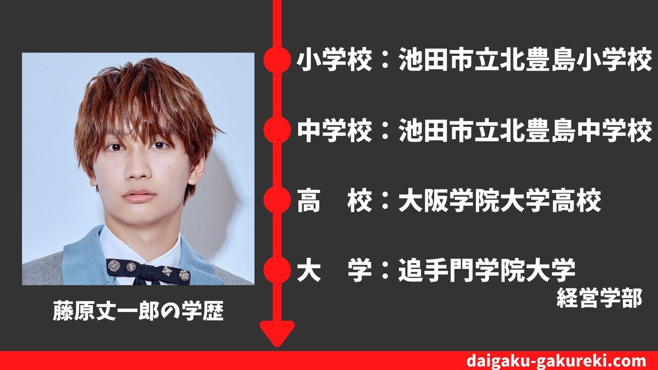 藤原丈一郎さんは高校卒業後、大阪府茨木市にある追手門学院大学・経営学部に進学したと言われています。