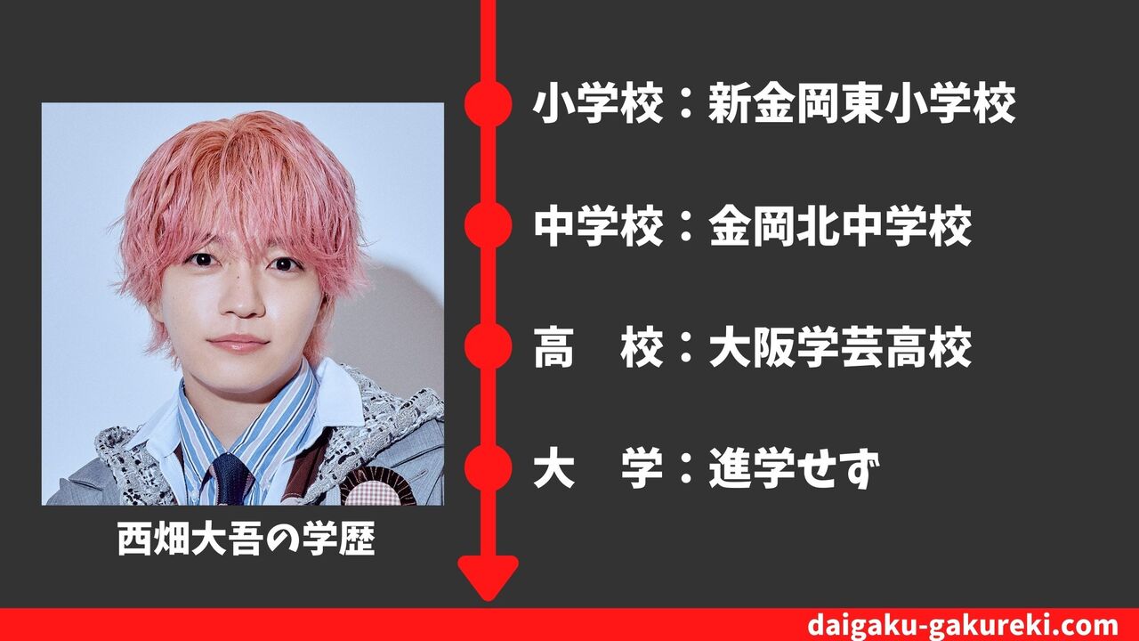 西畑大吾さんは大阪学芸高校卒業後、大学には進学せず芸能活動に専念する道を選びました。