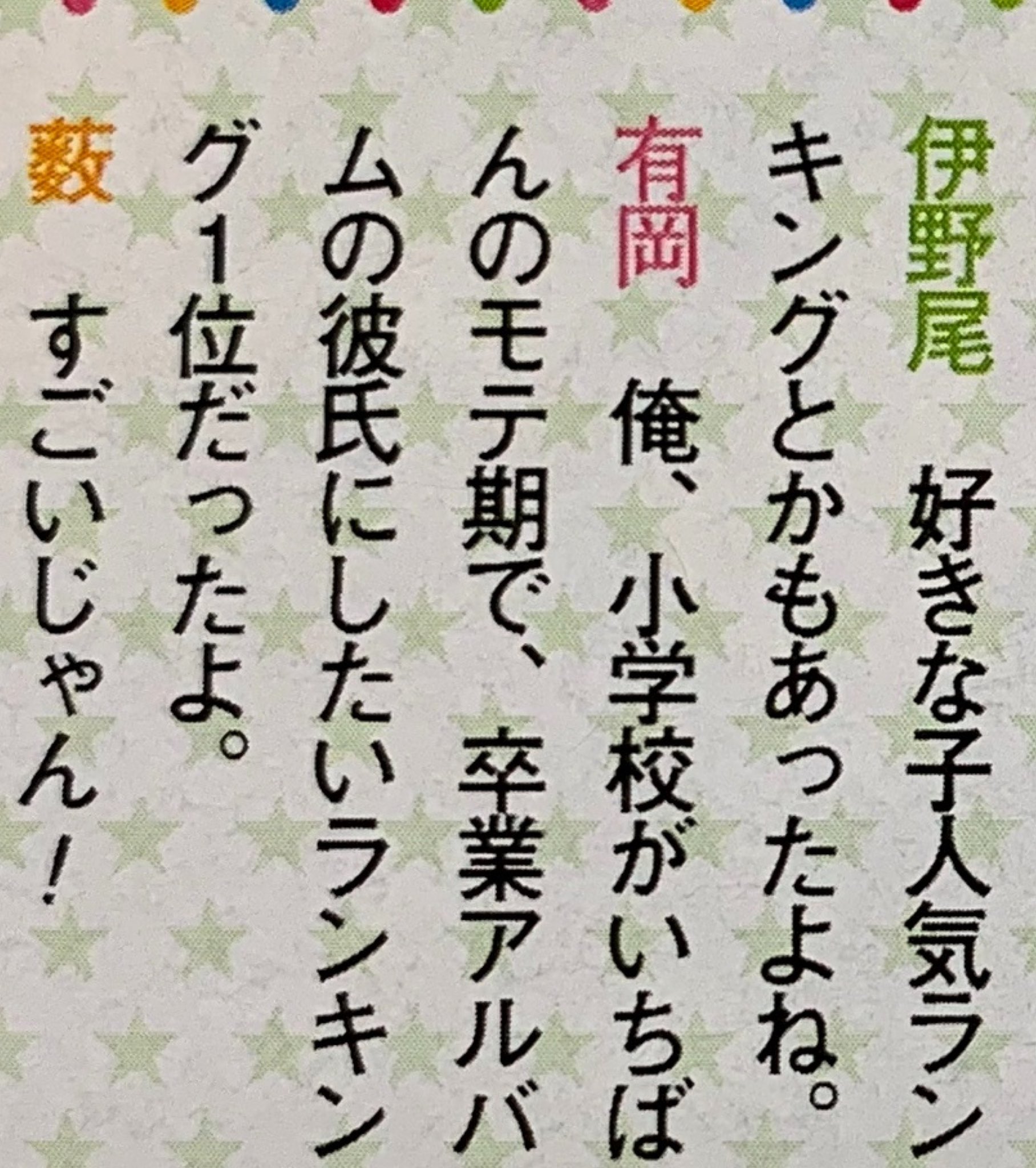 2010年P誌 あり「俺、小学校がいちばんのモテ期で 卒業アルバムの彼氏にしたいランキング 1位だったよ」
